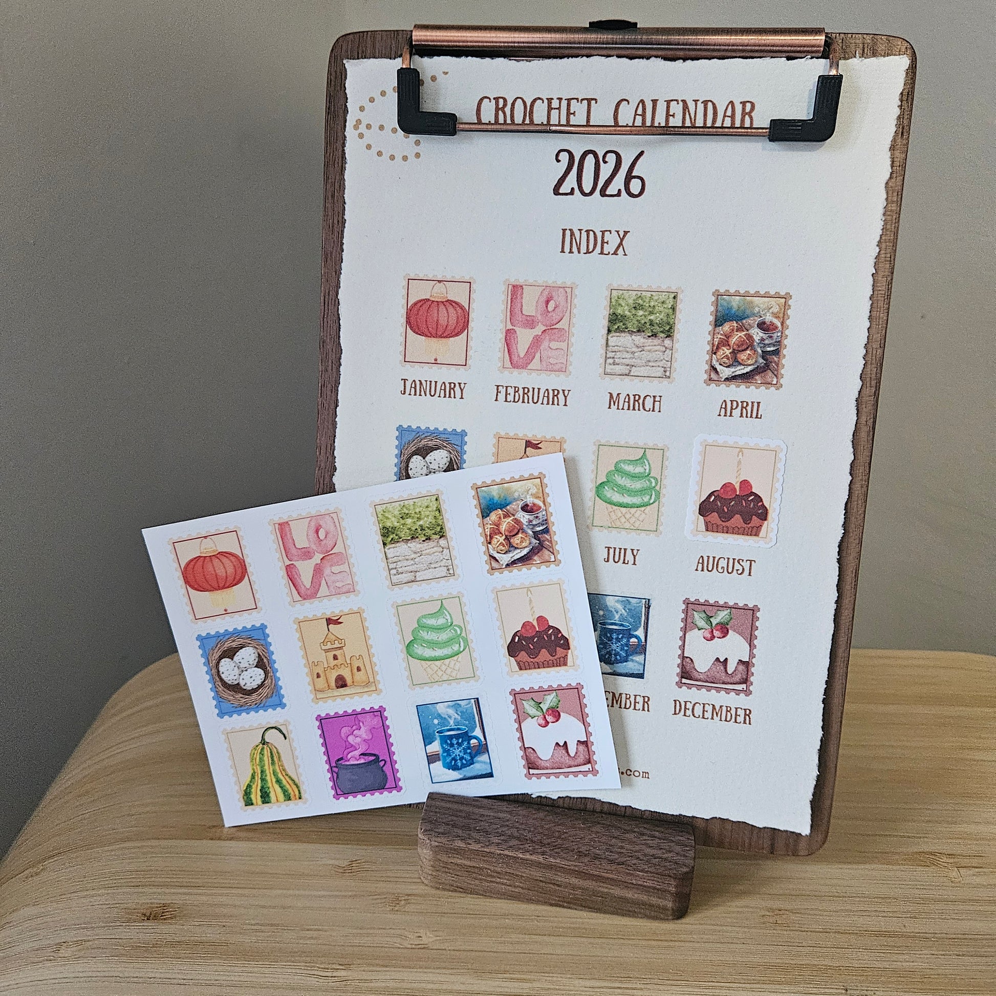 2026 Calendar Sticker Sheet - Includes 12 Stamps, one for each month, with a spot on your calendar to stick them!